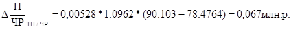 Исходя из вышеприведенных расчётов видно, как изменилась прибыль на одного работника за счет факторов, формирующих уровень среднегодовой выработки промышленно-производственного персонала. Общее изменение прибыли на одного работника в 2011 г. по сравнению с 2010 г. составило 4,8914 млн. руб. При этом, при увеличении рентабельности продаж рентабельность персонала увеличилась на 2,412 млн. руб. При повышении доли выручки в стоимости продукции прибыль на одного работника повысилась на 0,0214 млн. руб. При увеличении среднегодовой выработки одним работником прибыль на одного работника увеличилась на 2,449 млн. руб.